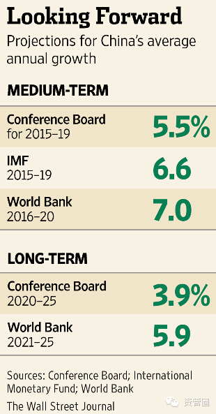 国际货币基金组织(International Monetary Fund, 简称IMF)和世界银行(World Bank)也预计,中国经济增速将在未来几年放缓,但程度较为温和。布鲁金斯学会(Brookings Institution)的中国问题专家杜大伟(David Dollar)表示,世界大型企业研究会的预测令人吃惊。
