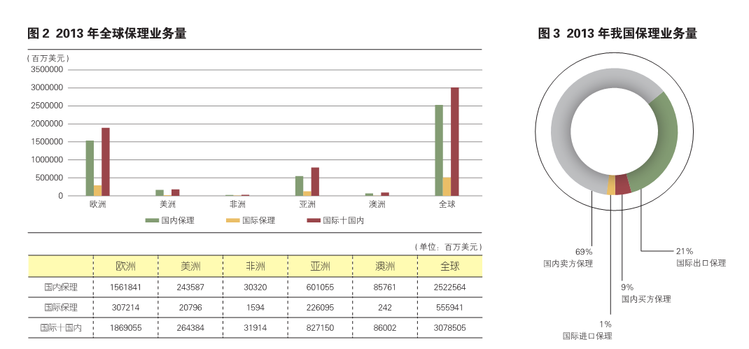 根据FCI(国际保理商联合会)统计数据,2013年全球保理总量达30785.05亿美元,但在全球经济萧条的背景下保理增速出现放缓,同比增幅约10%。其中国内保理25225.64亿美元,同比增幅8%;国际保理5559.41亿美元,同比增幅20%,其增幅远远超过国内保理。