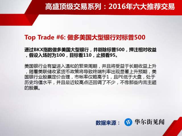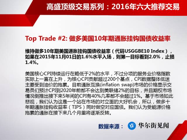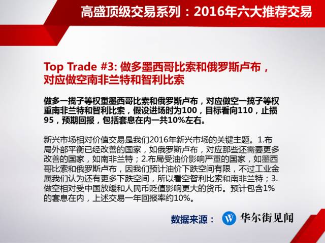 作为华尔街历史上盈利能力最强的银行之一,高盛近日发布2016顶级交易系列史诗级报告,从全球宏观经济、外汇市场、大宗商品市场到地缘格局、投资