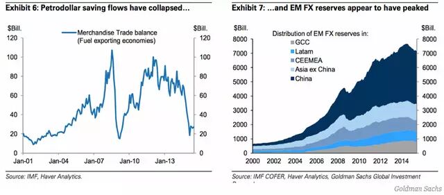 “全球储蓄过剩”是前美联储主席伯南克在2009年左右油价反弹期首创的说法。高盛认为,在本世纪金融危机前后,石油美元带来的储蓄激增。近期全球能源价格暴跌后,石油美元的储蓄也在锐减。这类储蓄减少对利率是利空。