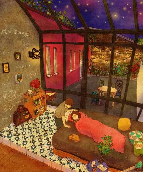 冬天的夜黑得早,我常常一不小心就趴在桌子上睡着,你总会默默给我披上外套。