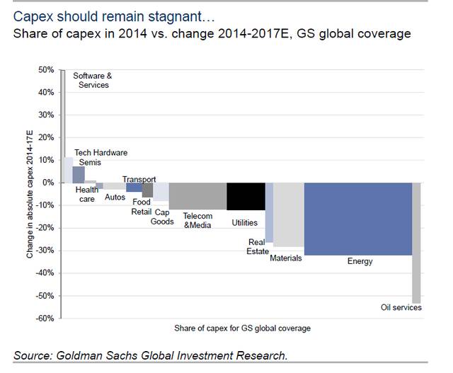 很显然,在油价暴跌时代,能源类公司的资本性支出骤降难以避免。