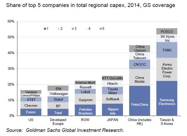 有意思的是,2014年在相关支出方面,能源类公司几乎“一统江山”。