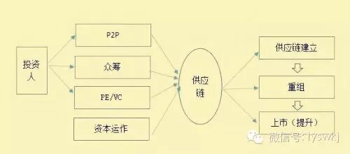 在狭义互联网供应链金融基础上,我个人首次提出广义互联网金融概念,即利用互联网技术,对的供应链的建立、重组、提升提供全方位的金融服务。电子商务平台的供应链金融的重组,包括纵向重组,即供应链上、下游企业重组与横向重组,即不同供应链间的重组。供应链提升指通过资本运作,将供应链核心企业打造成上市公司。全方位的金融服务,指包括P2P、众筹、PE/VC及资本运作等各种金融手段综合运用。广义互联网供应链金融如下图所示: