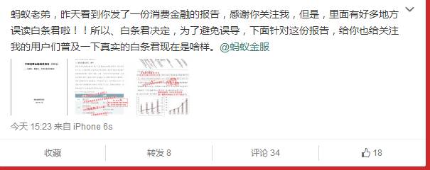 京东白条隔空喊话蚂蚁金服 指其消费金融报告有误