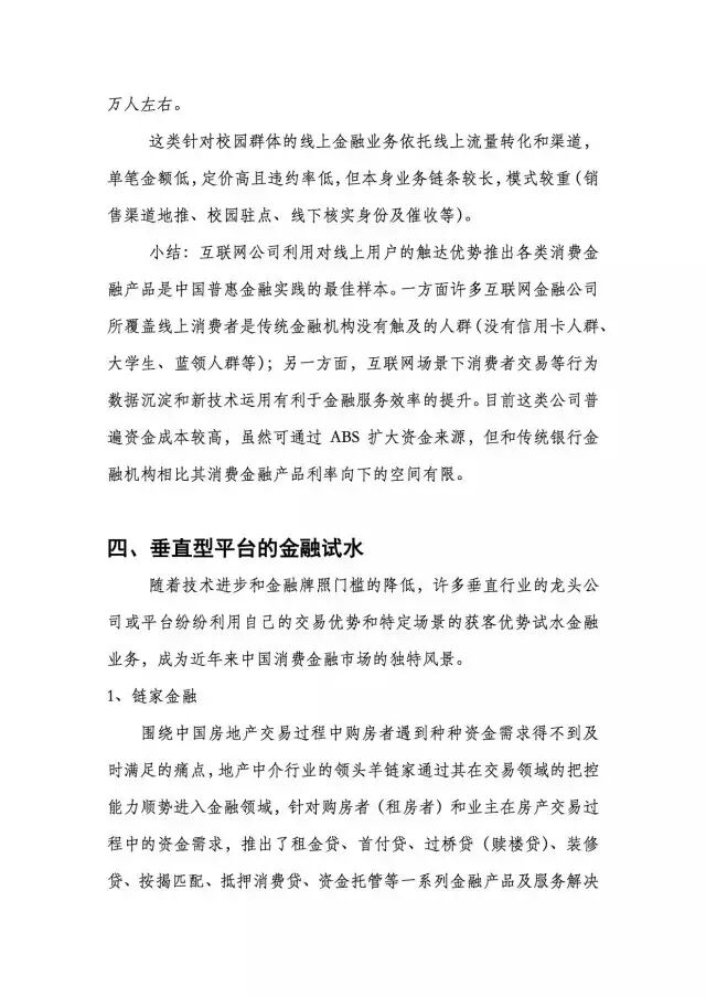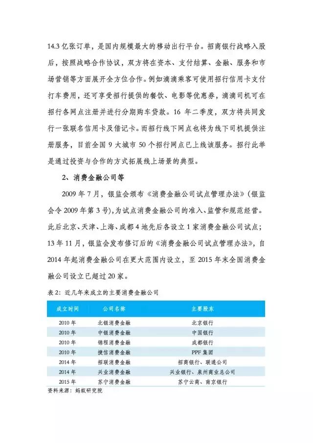 昨日,蚂蚁金服研究院发布《2016中国消费金融趋势报告》,开篇指出“消费金融崛起将是大概率事件”。报告中对商业银行、互联网金融公司、垂直型平台在消费金融领域的动作和布局分别进行了分析,除自身产品蚂蚁金服、花呗、借呗外,还涉及微粒贷、京东金融&白条、链家金融等产品和平台。
