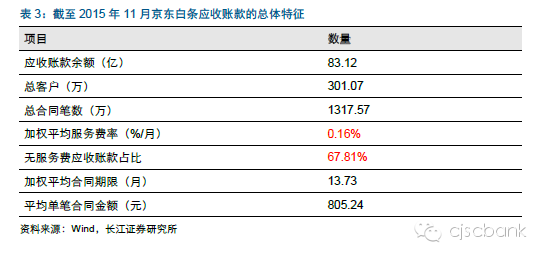 以京东白条为例。截至2015年11月,其月服务费率仅为0.16%,年化服务费率为1.92%,仅资金成本就难以覆盖(ABS仅利息成本就在4%以上),因此推断,京东白条战略重心并不在短期盈利,而在数据积累。