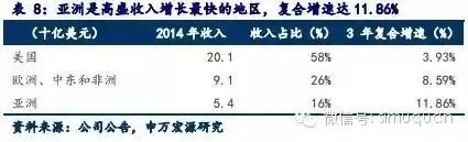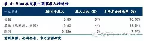 Visa在美国和加拿大的渗透率已经达到100%,巴西90%,南非49%,新加坡63%,日本26%,澳大利亚和新西兰80%,东南亚57%。在美国的收入占50%以上。