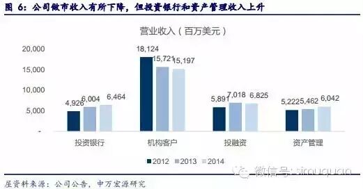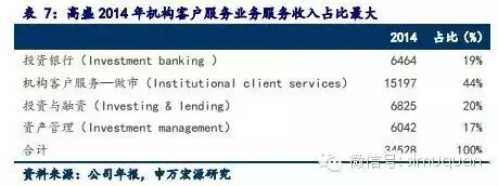 高盛集团(NYSE:GS)金融危机以后,申请了商业银行业务,此前是一家投资银行。但与国内券商不同,丰富的金融和衍生产品为公司带来了大量做市的机会和收入,其为机构客户提供做市的收入占总收入的近一半。此外,高盛还是前二十大的资产管理机构。