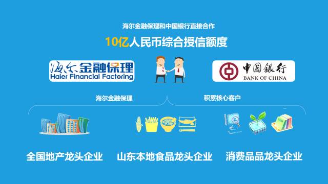 经过一年的积累,海尔保理初步形成了核心客户基础群体、行业基本布局与规划,形成了一定的地域优势,并试行成功产业链共享创利模式、资产证券化等特色商业模式。通过差异化金融服务,积累了全国地产龙头、山东本地食品与基础消费品龙头企业等核心客户。在利用优质表内保理融资资产,发行海尔保理一期ABS成功同期,中国银行与海尔保理直接合作,给予了10亿元人民币综合授信额度。