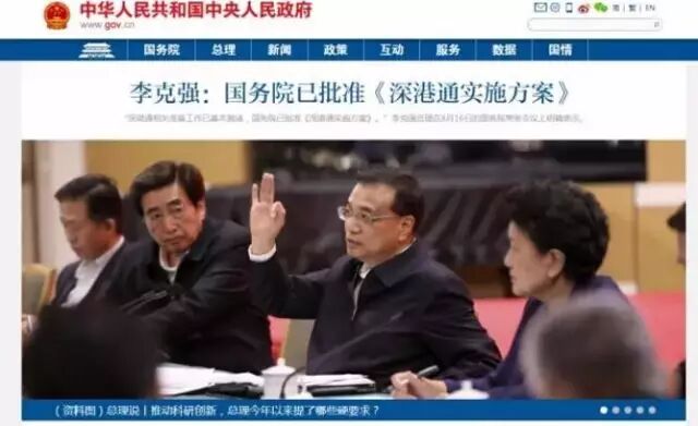 李克强还在会议上表示,在沪港通试点成功基础上推出深港通,标志中国资本市场在法制化、市场化和国际化方向上又迈出坚实一步,具多方面积极意义。