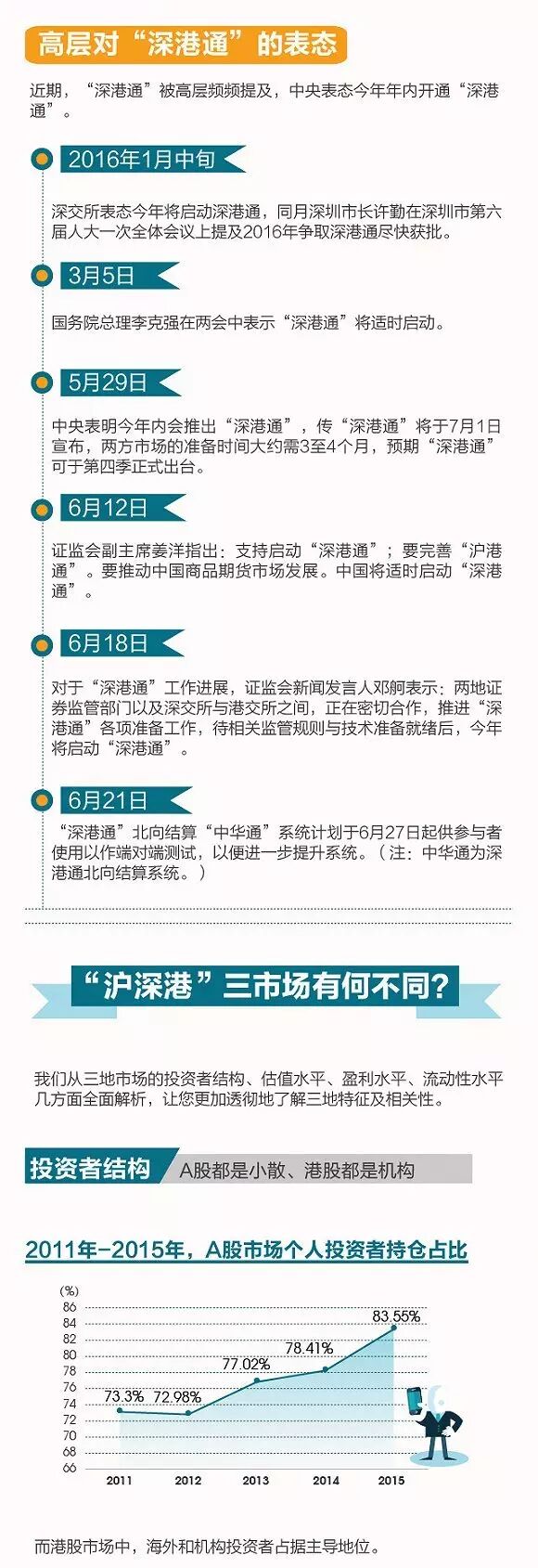 在今年的政府工作报告中,李克强总理提出,要“适时启动深港通”,各方对此普遍期待并寄予厚望。2014年底沪港通试点启动以来,总体运行平稳有序,经受住了市场检验,各方面反应正面,实现了预期目标。