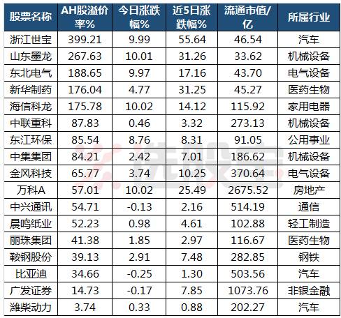 在投资标的上,尽管逻辑勉强,但市场就是按照“马太效应”的溢价越多,股价涨的越多的方式在走,不过目前节点不再建议再追浙江世宝、山东墨龙这种已连续大涨的品种,而可以去关注AH公司中近期涨幅不大,且流通市值也较小的个股。