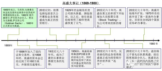 1869年,高盛公司初创,20世纪初还只是一家很小的家庭企业,现如今经历147年峥嵘岁月的考验和数次金融危机的洗礼,高盛公司已成为世界声誉卓著的投资银行和多元化的金融集团。高盛集团的运营管理实践以及其所代表的专业精神、风控制度、企业文化值得我们深入研究借鉴。