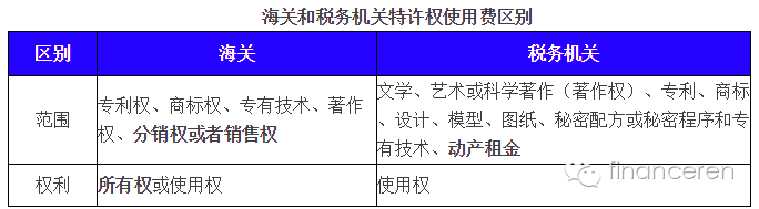 从这一定义看,海关和税务机关对特许权使用费的判定是有区别的。其主要区别如下: