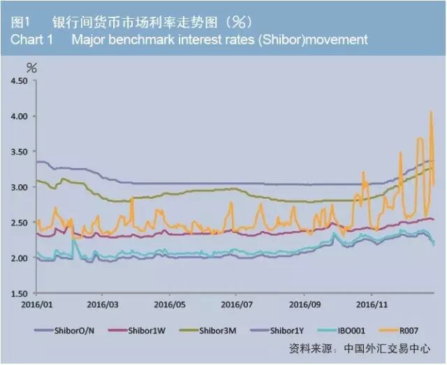 来源:chinamoneymagazine 中国外汇交易中心 整理:Bank资管 一、银行间本币市场 流动性格局自3季度末开始转变,货币市场短期利率从窄幅波动转为中枢上升、波动加大,中长期利率从震荡下行转为持续上升。 2016年1月29日起,央行调整公开市场操作的频率,每个工作日根据货币政策调控的需要开展公开市场操作,并配合使用MLF等工具,以实现政策调控目标。1-8月,央行通过货币政策操作以保持流动性合理适度,市场资金面总体平稳。 随着央行重启14天期和28天期逆回购操作、MLF操作期限拉长等举措的实施,央行货币政策调控从保持流动性的合理适度转向流动性的基本稳定,去杠杆、促进资金流入实体经济的政策意图逐步强化,叠加国内通胀水平上升、PPI转正且涨幅扩大、部分经济指标转好、特朗普政策导致市场预期变化、美国加息路径预期强化等因素,市场预期逐步转变,资金状况有所收紧,利率中枢不断抬升。伴随着10月末开始的债市大幅波动,货币市场利率波动进一步放大,年末则受央行维稳举措等因素影响有所回落。 2016年,货币市场成交697.2万亿元,同比增长33.6%。其中,信用拆借成交95.9万亿元,同比增长49.4%,质押式回购成交568.3万亿元,同比增长31.4%,买断式回购成交33万亿元,同比增长30.3%。 债券市场收益率创近年新低后V型反转,全年波动明显。 2016年年初到3月中上旬,银行间债券市场总体呈现震荡态势。截至3月20日,1年期和3年期国债到期收益率均较年初下降20个基点左右,7年期和10年期国债到期收益率均与年初基本持平。3月下旬以后,中铁物资、东北特钢等债券违约事件连续爆发引发市场担忧,加之部分经济指标回暖、金融业推行营改增等因素,债券市场收益率总体显著上行,其中信用债、国开债等品种收益率上行速度较快。而后随着政策性金融债免税等营改增补充解释的发布、政府协调违约事件处理等,收益率有所回落后维持震荡。 6月中旬后,英国退欧事件引发全球避险情绪、国内经济数据等基本面指标不佳、资产荒下资金配置需求强劲,加之资金面总体较为宽松、货币市场利率维持低位运行,乐观情绪不断强化,市场交投活跃,收益率持续下行,期限利差、信用利差不断压缩。 进入11月,由于美国等发达经济体债券收益率持续上行,特朗普政策导致市场预期修正、美联储加息路径预期强化,及央行重启14天期和28天期逆回购操作、MLF操作期限拉长等举措持续实施,市场资金面逐步趋紧、利率中枢上升,部分经济基本面指标转好、通胀水平上升、PPI由负转正且涨幅扩大,市场对于货币政策转向、监管层去杠杆等预期增强,叠加国海证券违约事件等因素影响,债券市场收益率总体快速大幅上行。 2016年,债券市场成交128.8万亿元,同比增长46.5%,其中债券借贷成交1.7万亿元。从期限结构看,5年期以下品种、5-7年期品种和7-10年期品种成交金额分别为92.5万亿元、9.3万亿元和21万亿元,市场占比分别为72.8%、7.3%和16.5%。 互换利率总体震荡走升,后几个月升幅较大。 2016年年初至3月中上旬,受货币市场短期利率总体平稳、Shibor3M等货币市场中长期利率震荡下行、部分指标显示经济下行压力较大等因素影响,FR007品种互换利率小幅波动,Shibor3M品种互换利率震荡下行。 3月下旬以后,伴随着部分经济指标好转、Shibor3M等货币市场中长期利率上行、政策预期变化等因素,加之信用事件等因素引发债券收益率总体上行,互换利率持续上升,4月底以后逐步回落并维持震荡。 8月底以后,受货币市场利率走高、货币政策预期转变、通胀水平上升、部分经济指标向好等因素影响,互换利率稳步上升,并且随着债券市场的大幅调整,在10月底以后加速上行,波动显著扩大,年末有所回落。 2016年,利率衍生品市场成交9.9万亿元,同比增长12.7%。其中,普通利率互换成交9.9万亿元,标准利率互换成交8亿元,债券远期成交14.9亿元,标准债券远期成交1亿元,远期利率协议成交1亿元。 普通利率互换中,从期限结构看,1年及1年以下品种成交占比为79.3%,1-3年和3-5年品种成交占比分别为4.7%和15.9%;从参考利率看,以FR007为浮动端参考利率的互换交易占比为85.9%,以ShiborO/N和Shibor3M为浮动端参考利率的互换交易占比分别为2.7%和11.1%。 二、银行间外汇市场 人民币对一篮子货币汇率小幅贬值,中间价新机制运行良好。 1.人民币对一篮子货币汇率小幅贬值 2016年,全球金融市场不确定性继续增强。年初至4月底,受市场对美联储加息预期降温影响,美元对全球主要货币小幅走贬,美元指数由年初的98降至93,与此同时,人民币对美元汇率保持稳定,对一篮子货币有所走贬。5月以后,美元指数转跌为升,人民币对美元贬值压力有所加大,对一篮子汇率保持稳定。2016年末,人民币对美元汇率中间价收于6.9370,较年初贬值6.3%,CFETS人民币汇率指数收于94.83,较年初贬值5.1%。 2016年人民币汇率总体走弱,一方面是对美元走强的反应,另一方面,全球金融市场动荡加剧提升了投资者的避险情绪,也驱动短期资本由新兴市场国家流入以美国为代表的发达国家。 2016年,人民币汇率继续按照以市场供求为基础、参考一篮子货币进行调节的机制有序运行。参考一篮子汇率调节,不仅有助于保持总体竞争力,而且有助于稳定市场预期。11月美国总统大选后,美元显著走强,人民币兑美元汇率加速贬值,但无论与新兴市场货币还是发达经济体货币相比,人民币贬值幅度都相