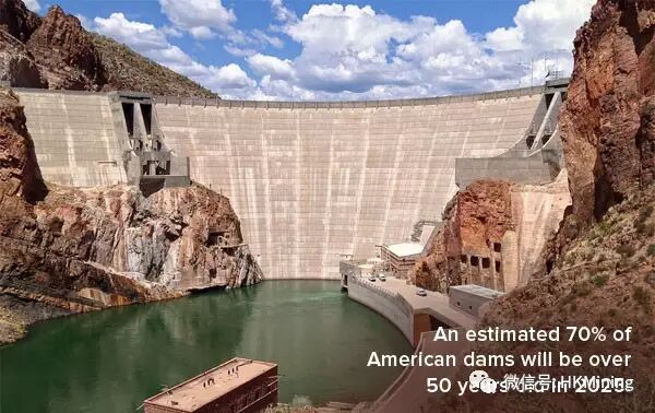 美国土木工程师学会估测,到2025年美国老旧基础设施重建需要耗费3.9万亿美元。其中最迫在眉睫的投资领域是破旧不堪的大坝。据统计,到205年,美国90,000万座大坝其中70%服役时间将达到50年,接近工程寿命的终点。目前美国约有15,500座大坝处于“碰运气”状态,意味着可能发生故障致命风险。