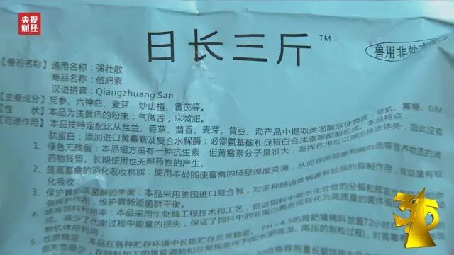 日长三斤,是河南漯河宇信科技有限公司的主打产品之一,适用于鸡鸭猪鱼虾等多种动物,产品包装显示,这是一个以党参、六神曲等组成的纯中药制剂,然而公司负责人承认,这里面实际也有西药成分。