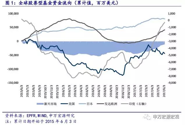 6月7日当周,美国、日本股票型基金分别净流出44.54亿美元和12.67亿美元。发达欧洲、新兴市场和印度继续最近两月以来的净流入态势,当周净流入资金分别为21.75亿美元、15.41亿美元和2.40亿美元。