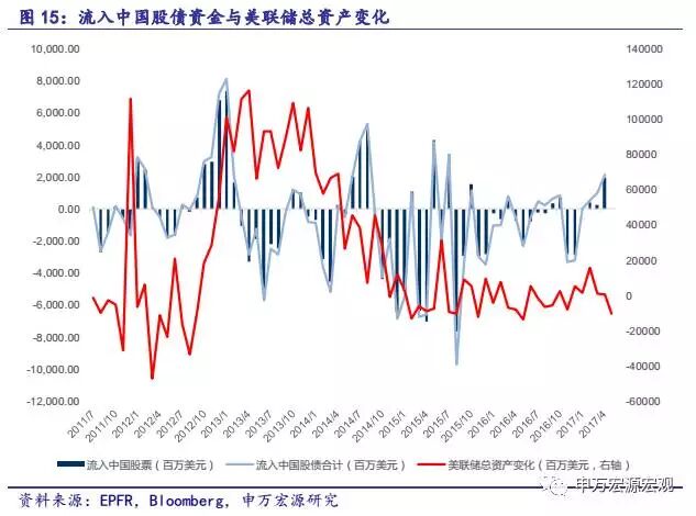 美联储总资产5月结束17年初以来的上升趋势,当月下降102亿美元。17年1月至4月分别增加13.87、158.64、9.16和5.24亿美元。