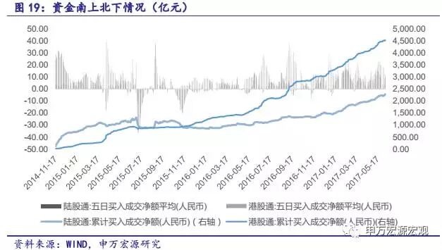 本周6月7日,港股通五日买入成交净额平均9.56亿人民币,累计净买入额达4513.49亿人民币,陆股通五日买入成交净额平均11.56亿元,累计净买入额达2280.93亿人民币。