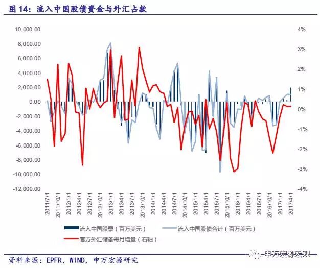 4月中国股票资金净流入19.61亿美元,3月流入中国股票为2.67亿美元。债券市场延续上月资金流入状态,3月出现流入7.48亿美元。 4月份流入中国债市资金为2.08亿美元。4月流入中国股债合计21.69亿美元。中国5月外汇储备30536亿美元,环比增加240.3亿美元,连续第四个月上升,4月外储上升204.5亿美元,外汇储备规模可能在波动中逐步趋于稳定。主要原因是我国经济增长动能进一步增强,跨境资金流出压力有所缓解。