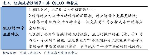 根据货币调控需要,2013年1月18日,央行创设了“短期流动性调节工具(Short-term Liquidity Operations, SLO)”,作为公开市场常规操作的必要补充,在银行体系流动性出现临时性波动时相机使用,调节市场短期资金供给,熨平突发性、临时性因素导致的市场资金供求大幅波动。