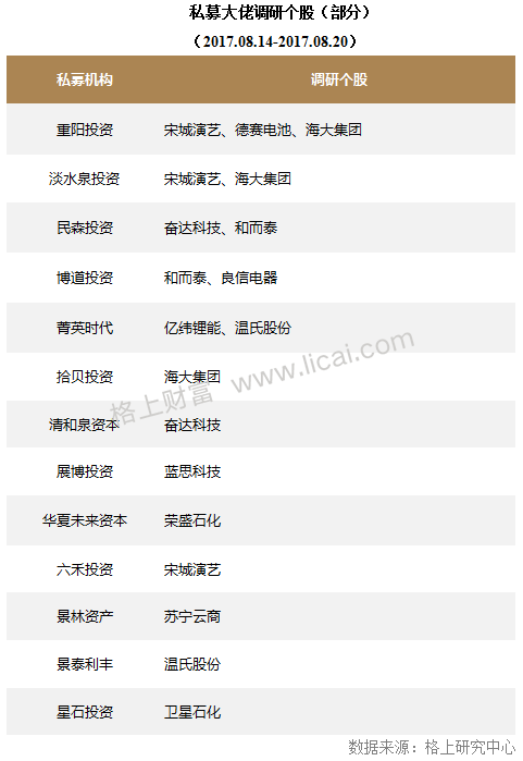 随着中报截止披露期的临近,国内上市公司中报披露渐入密集期,社保基金、证金、汇金这些“国家队”的心水股也渐渐显露。格上研究中心根据Wind数据整理发现,截至8月18日,已有865家上市公司披露了2017年中报,有372家公司前十大流通股股东中出现“国家队”的身影,其中,有12家公司的前十大流通股东还出现了像淡水泉投资、重阳投资、星石投资等知名私募的身影。