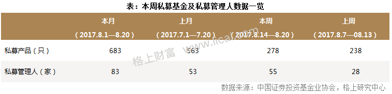【备案数据】本周新备案证券类产品278只,新备案私募管理人55家