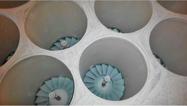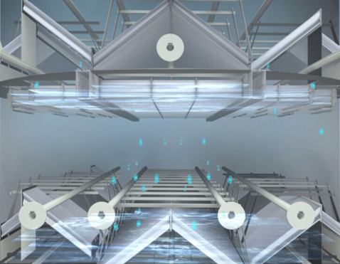 经过脱硫处理的湿烟气通过旋流管束,在高速运动条件下碰撞几率大幅增加,易于凝聚、聚集成为大颗粒,从而实现从气相的分离。离心分离下的液滴脱除经过加速器加速后的气流高速旋转向上运动,气流中的细小雾滴、尘颗粒在离心力作用下与气体分离,从而达到超净除尘的效果。