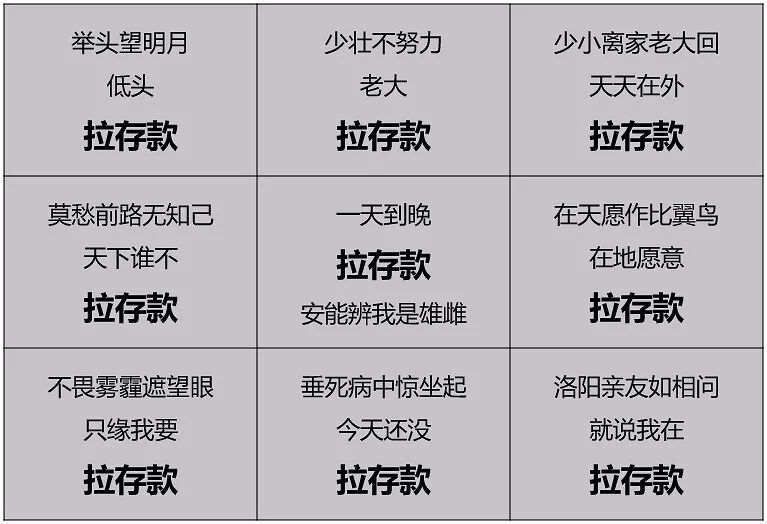 附:网上流传的古诗词版拉存款(由于网上那一版太模糊,丁丁手工为你们做了一个清晰版哦)