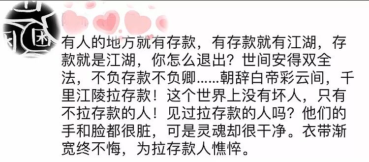 在拉存款的路上,你有些什么样的酸甜苦辣?留言说说吧!