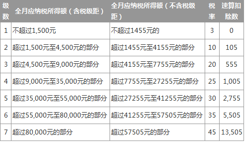 个税免征额3500元(工资薪金所得适用)