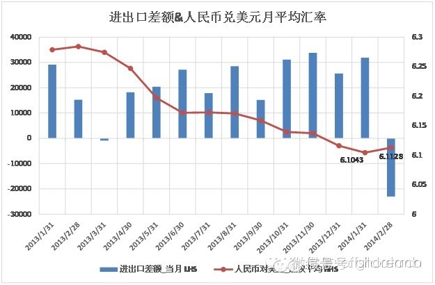 从上表2可以看出,进出口贸易额其实就是包含在经常账户中的货物和服务一栏,当中国产生顺差的时候,即大量的货物和服务出口到其他国家,而其他国家需要大量的人民币来进行结算,此时市场上对人民币的需求上升,则人民币升值;反之,进出口逆差时,人民币贬值。