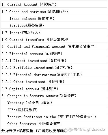 影响汇率的理论学说有很多,这边我们就简单将汇率和国际收支理论联系起来,即汇率的升贬值是由货币的供求关系决定的。我们现在讲的汇率经常跟国际收支(Balance of Payments--BOP)中的经常性账户(CurrentAccount)以及资本和金融账户(Capital and Financial Account)中的外商直接投资(Foreign Direct Investment--FDI)联系在一起。先看一下简化的国际收支表的结构。