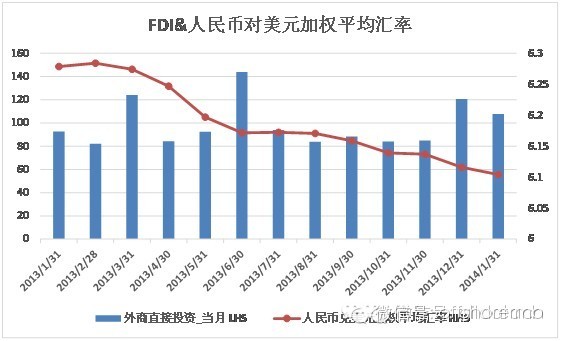 外商直接投资大量增加时,即外商在本国市场大量购买或者租赁土地进行厂房等建设时,即是相当于购买本国的商品一样,只是这次的商品是固定资产而非制造性产品,此时对本国货币需求增加,人民币升值;反之,人民币贬值。