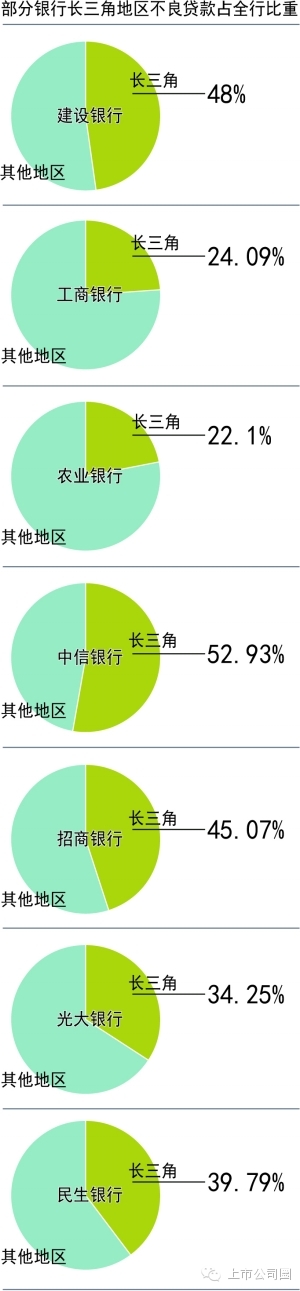 数据显示,建行的长三角地区资产质量在全行中压力最重。年报显示,建行在长三角的五家一级分行的贷款及垫款余额在全行占比为20.74%,而不良贷款却占了全行的48%,而在2012年,该比重也只有44.15%。
