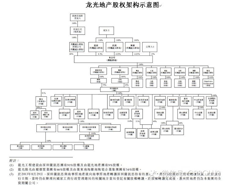 龙光地产在开曼群岛注册成立。《南华早报》介绍,2010年以来,经过多笔交易,纪凯婷通过多家设在英属维京群岛的控股公司以及英属格恩西岛成立的家族信托成为龙光地产的最大所有者。