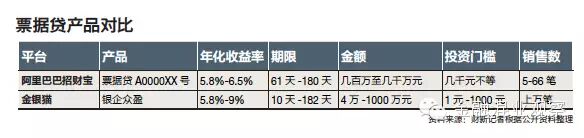 “主要是融资金额大小的差别,招财宝上面有大额的票据贷产品,金银猫上面则多为小额的。”上述票据业务资深人士指出。