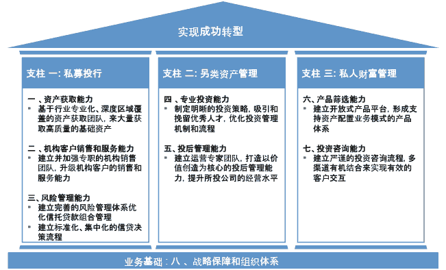 信托公司要抓住以上三大业务的机遇,必须通过建立新的业务模式并打造相应的核心能力,实施全面转型。我们认为以下八大核心能力是实现成功转型的必要条件。