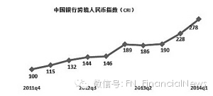 “一季度,中国银行跨境人民币指数(CRI)上升至278点历史新高。” 5月14日,中国银行发布了2014年一季度跨境人民币指数,指数较2013年四季度上升22%,较2013年同期上升47%。