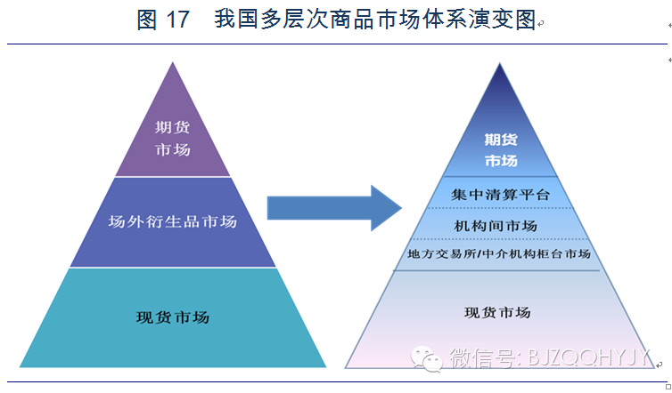 从现有的由期货市场、地方商品衍生品市场、现货市场构成的商品市场体系向由期货市场、场外衍生品市场、现货市场构成的商品市场体系演变,是一个从分裂、地区垄断的割裂型市场结构向统一、高效、开放的市场体系的进化过程。