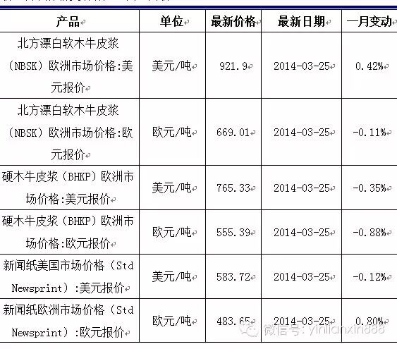 四、造纸行业相关产品价格综述