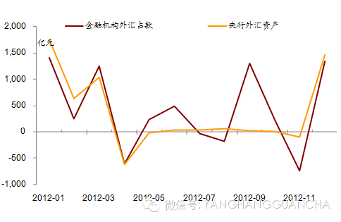 事实果真如此吗?如果不认为金融机构新增外汇占款从今年1月的4373亿下降到5月387亿的趋势会持续,还可以看看2012年5月至11月上次汇改时的情况。当时,由于央行退出常态式干预,央行外汇资产增量从2011年的月均2135亿元下降到这期间的月均4亿元。同期,金融机构外汇占款从2011年的月均2316亿元下降到月均185亿元。这充分说明央行外汇资产变动与金融机构外汇占款变动之间的密切关联。