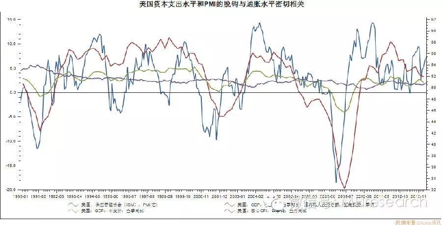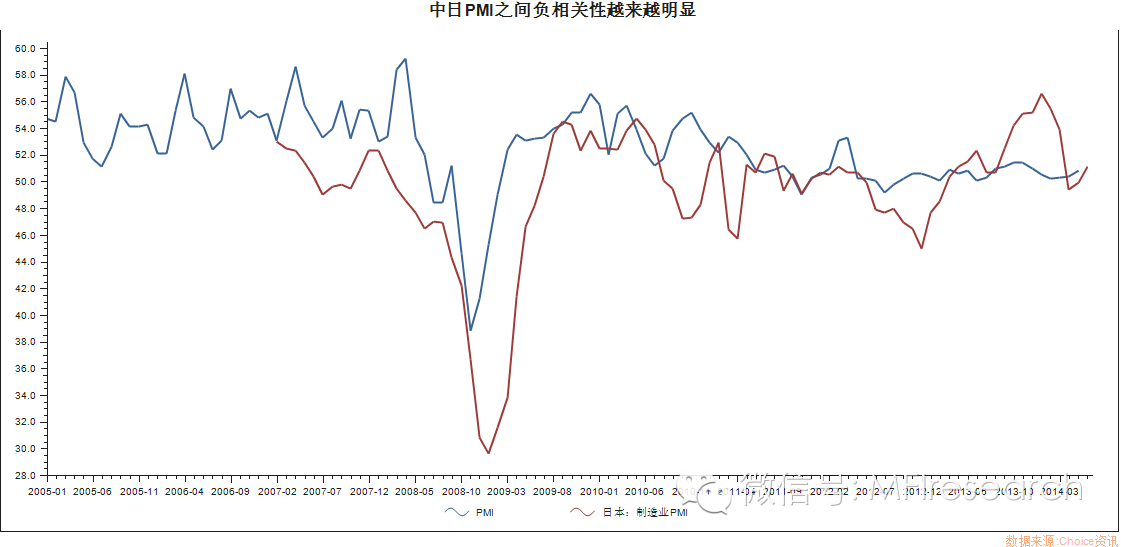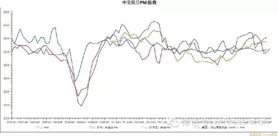 我们同时看到,2013年5月至2014年1月,美国PMI快速膨胀,这与美国GDP的反弹也是大体一致。美国国内普遍认为基于内生增长的复苏已经确认。这一乐观预期持续至今。