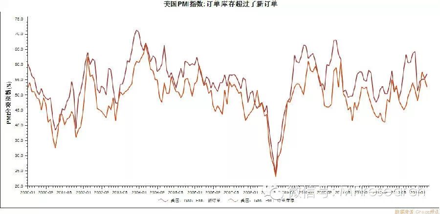 仔细分析美国ISM-PMI数据分项,可以看到PMI的膨胀,主要是新订单和出口订单拉动的,而且出于对经济复苏和通胀水平上升的乐观预期,美国企业积累的订单周期明显长期化。