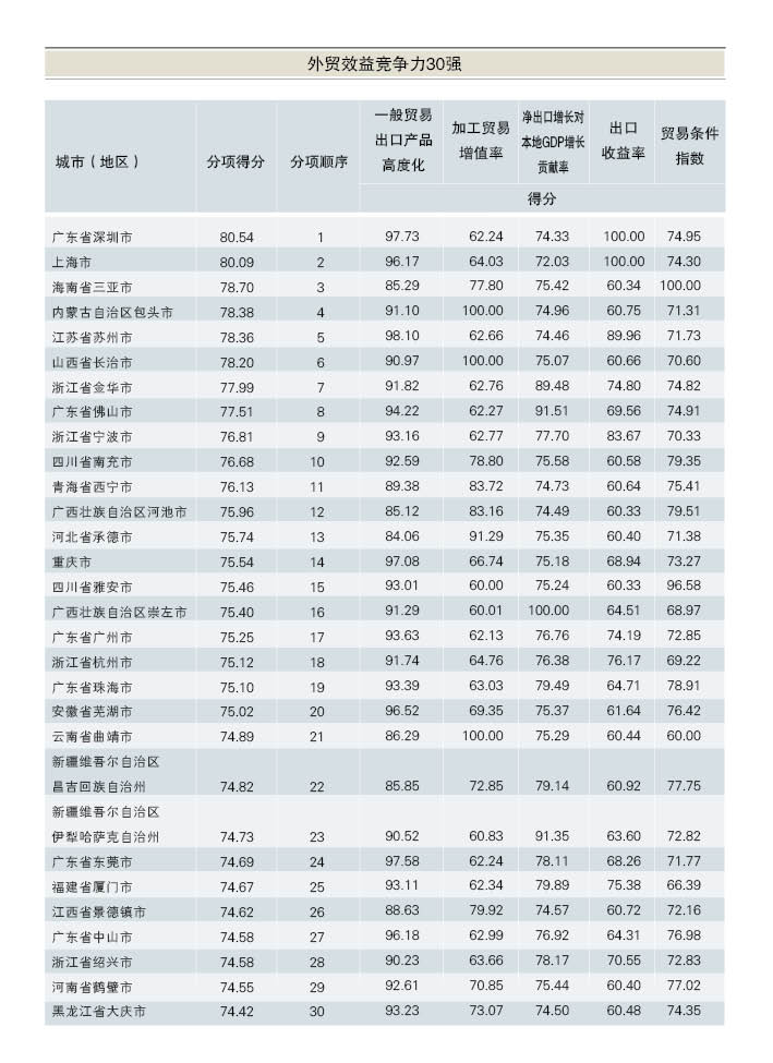 【榜单】2013年中国外贸效益竞争力30强城市:深圳、上海、三亚列前三