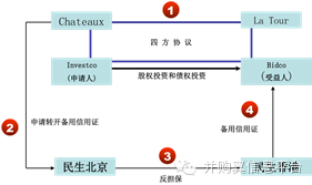 在这个结构中,INVESTCO以全额注资给Bidco,Chateaux希望民生银行香港分行能够为Investco出具不可撤销的贷款承诺函,用于证实Investco并购资金实力。