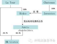 La Tour是标的公司的大股东,其全面控股一家SPV公司Bidco,Investco是Chateaux的SPV公司。