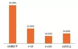 手机银行用户平均每周的使用次数在3次或以下的人群占比54.38%,7次以下的人群占比为75%,这说明手机银行的总体使用频率并不高,如何进一步提高使用率是关键。